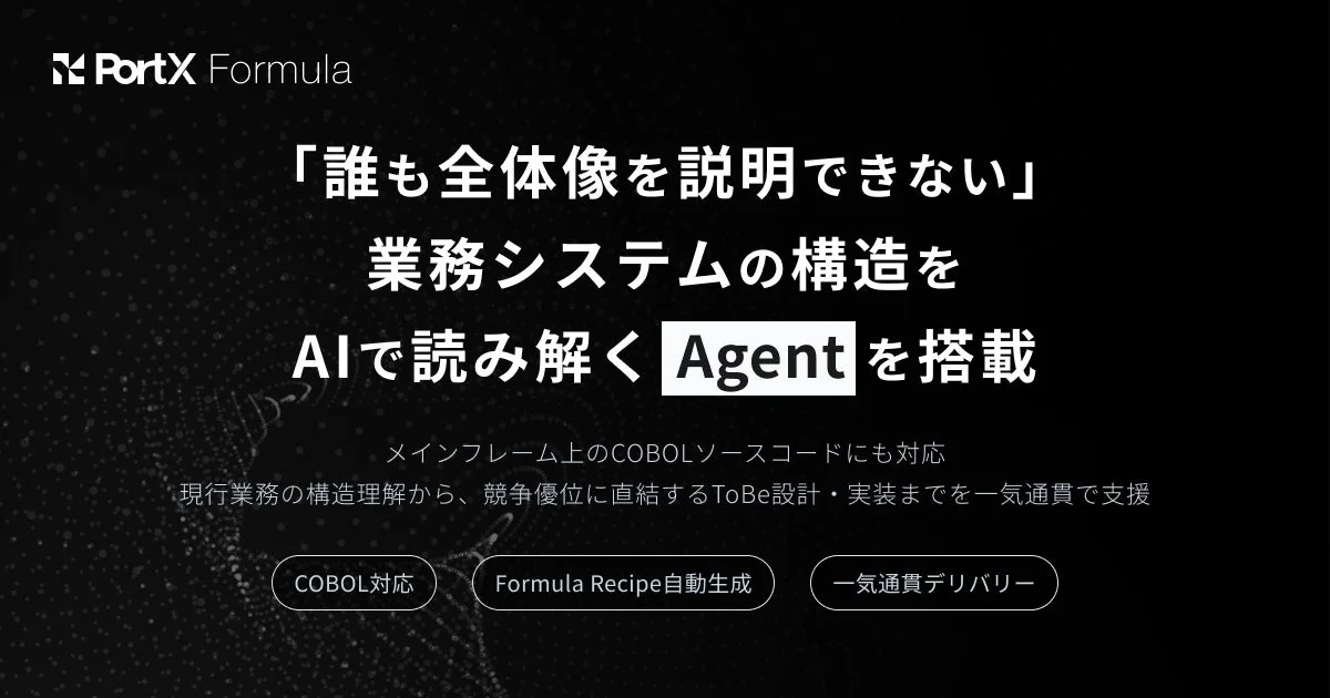 株式会社PortX(以下、PortX)は、AI開発・運用基盤「Formula」に新たな機能として「現行解析AI Agent」(以下、解析AI)の提供を開始しました。この革新的なAI Agentは、長年にわたり複雑化し、その全体像を誰も説明できなくなった業務システムの構造をAIが自動で読み解き、企業のデジタルトランスフォーメーション(DX)を強力に推進します。