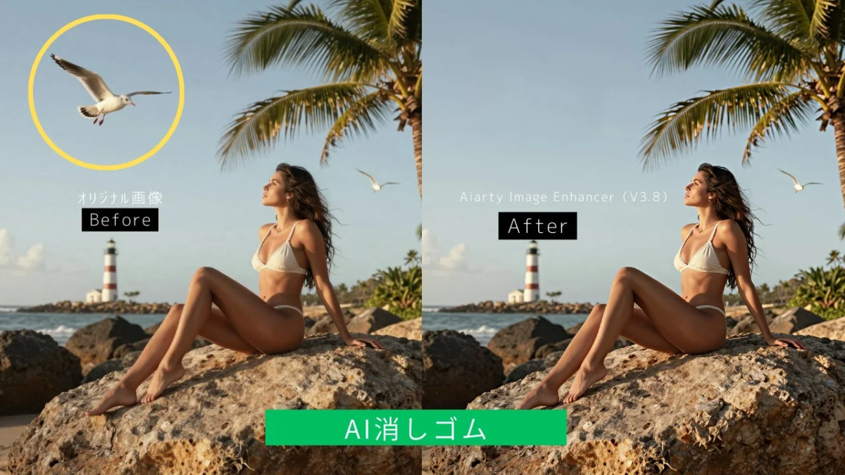 【Aiarty Image Enhancer(V3.8)】ワンクリックで不要物を除去する「AI消しゴム」を新搭載