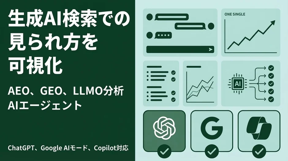 従来のSEO(検索エンジン最適化)は、ウェブサイトへの流入を増やすことに主眼を置いていましたが、生成AI検索においては、ユーザーはウェブサイトを訪問する前にAIの回答で意思決定をする可能性が高まります。このため、従来のSEO指標だけでは捉えきれない、生成AI特有の「見え方」に関する課題、すなわちAEO(AI Engine Optimization)、LLMO(Large Language Model Optimization)、GEO(Generative AI Optimization)の可視化ニーズが急速に高まっています。