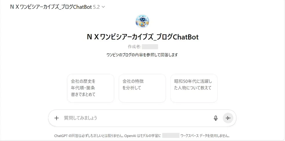 カスタムGPTでは、ナレッジデータをウェブ上にアップロードして使用するため、著作権上の問題が生じない資料や、誰もが自由に利用できる「公知情報」でのチャットボット構築が推奨されています。この点については、サービス利用時にNXワンビシアーカイブズから適切なアドバイスが得られるでしょう。