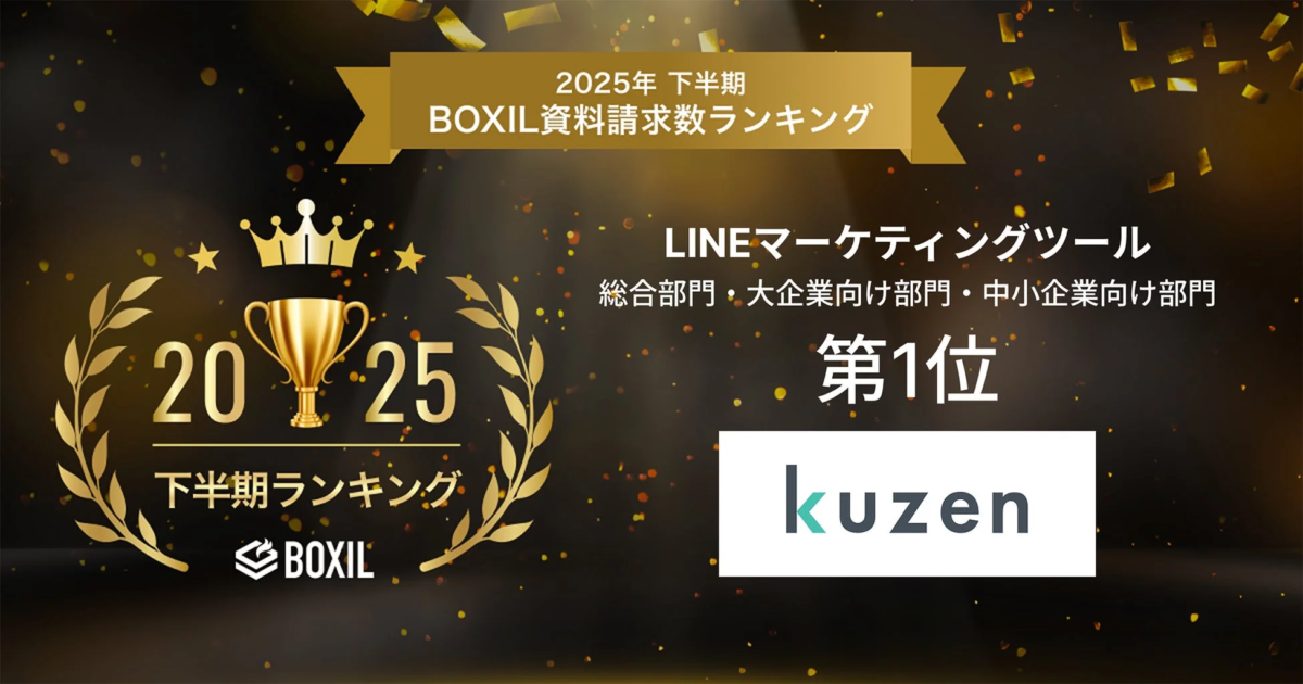 LINEマーケティングツール「クウゼン(KUZEN)」が「2025年下半期 BOXIL資料請求数ランキング」のLINEマーケティングツールカテゴリで3部門すべてにおいて1位を獲得したことは、現代の企業が求めるマーケティングのあり方と、「クウゼン」が提供する価値が見事に合致した結果と言えます。