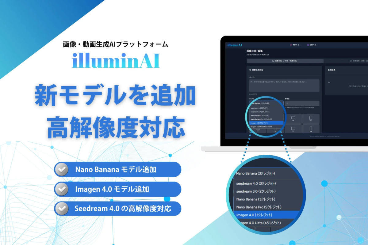 「illuminAI」は、クラウドサーバーのマネージドサービスやシステム開発を手がける株式会社ビヨンドが提供しており、直感的な操作で誰でも簡単にクリエイティブなコンテンツを生み出せるよう設計されています。そして今回、この「illuminAI」が大規模なアップデートを実施し、さらに強力なツールへと進化を遂げました。