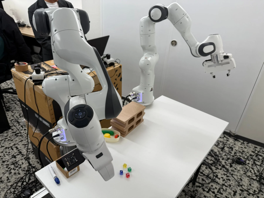 Franka Emika Researchは、その高精度な動作と優れた操作性から、このような複雑な協調タスクの自律動作デモの構築に非常に適しています。具体的には、物体を把持する(つかむ)、組み立てる、操作するといった、これまで人間が行っていた繊細な作業をロボットが自律的に実行することを目指しています。