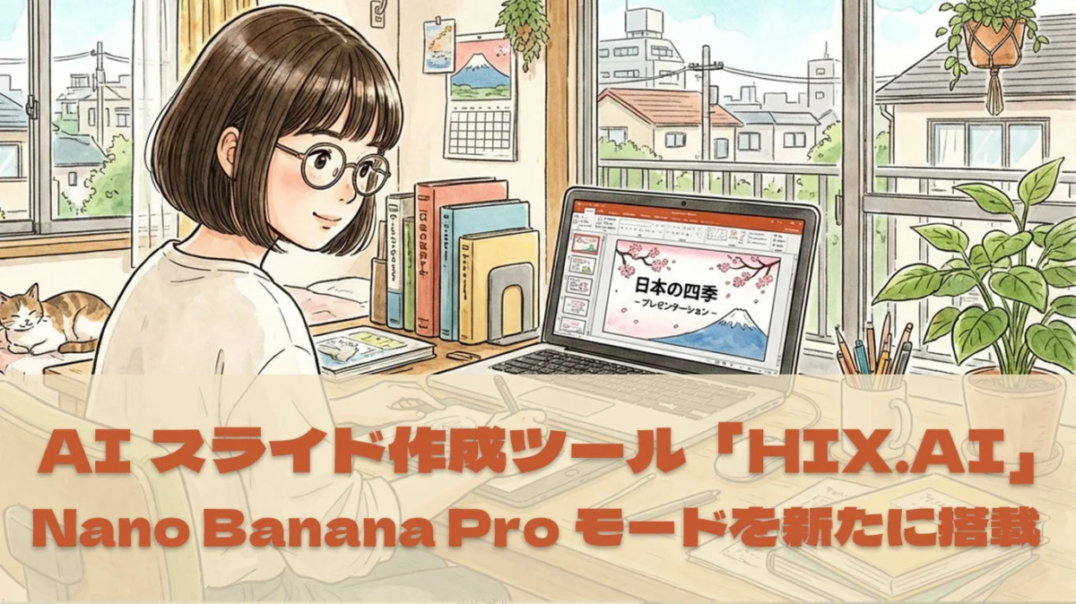 こうした課題を解決するために、AI技術を活用したスライド作成ツールが注目を集めています。中でも、AIチャット、画像生成、動画生成など多彩なAI機能を提供する「HIX.AI」は、2026年1月20日にAIスライド作成機能を大幅にアップデートしました。新たに高性能な「Nano Banana Pro」デザインモードを搭載し、さらにAI生成後のスライド編集機能にも対応することで、より高品質かつ柔軟なプレゼン資料作成を可能にしています。この記事では、AI初心者の方にも分かりやすい言葉で、HIX.AIの最新機能とその魅力を詳しくご紹介します。
