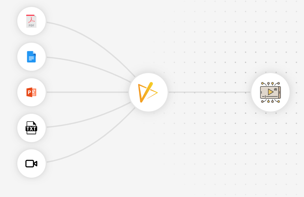 資料をアップロード: PowerPoint、Word、PDFなどの既存の資料をアップロードします。企業内で既に作成されている研修資料やプレゼンテーション資料などをそのまま活用できるため、新たにコンテンツを作成する手間が省けます。AIが資料の内容を解析し、動画の構成に落とし込みます。