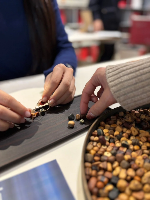 このワークショップでは、約30分で様々な色の木材を使ったウッドビーズのブレスレットを作ることができます。参加料は材料費・税込みで4,000円。オリジナル巾着が特典として贈られます。木の温もりを感じながら、自分だけのアクセサリーを作る楽しい体験ができます。