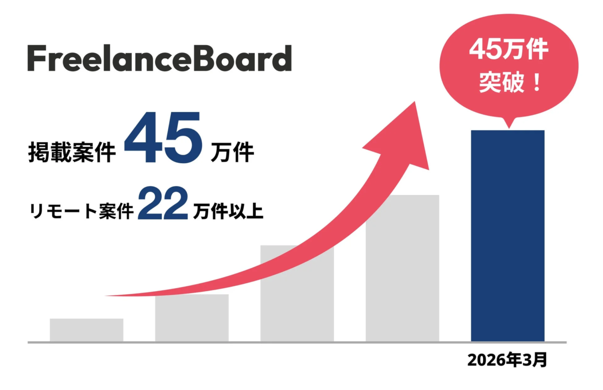 そのような中、フリーランスエンジニア・ITフリーランスの案件検索サイト『フリーランスボード』が、掲載案件数45万件を突破したことを発表しました。さらに、そのうち22万件を超える案件がリモートワークに対応していることも明らかになり、多様な働き方を求めるITフリーランスにとって朗報となっています。この成果は、2025年6月の正式版リリース以降、多くのフリーランスエージェントからの問い合わせを受け、急速な成長を遂げてきた結果です。