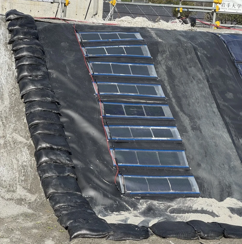 マクニカと奥村組が開始した「遮水シート一体型ペロブスカイト太陽電池」の実証試験とは?