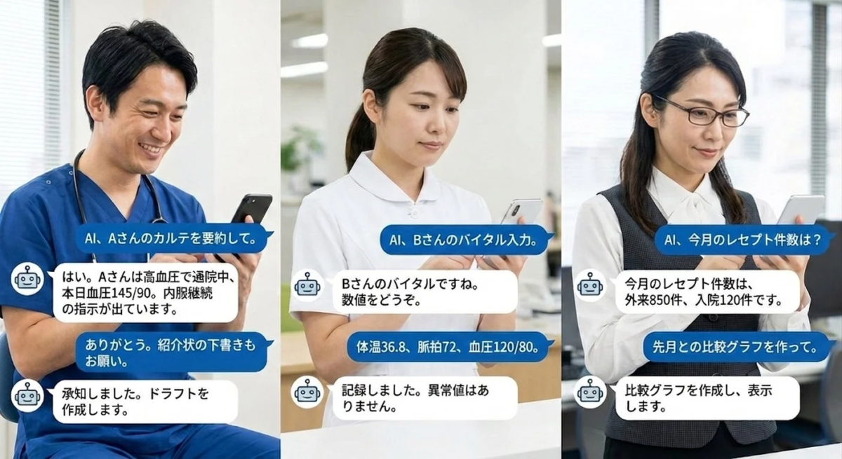 現代の医療現場は、技術の進歩とともに大きな変化の波に直面しています。特に、高齢化社会の進展や医療従事者の人手不足は深刻な課題であり、いかにして質の高い医療を維持・発展させていくかが問われています。これまで「医療DX(デジタルトランスフォーメーション)」という言葉が注目され、医療現場のデジタル化が進められてきましたが、その多くは紙媒体の情報をデジタルデータに置き換えることに主眼が置かれていました。しかし、デジタル化が進む一方で、医師がパソコンに向き合う時間が増え、かえって業務負担が増大するという新たな課題も浮上しています。