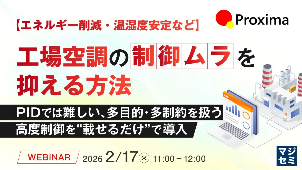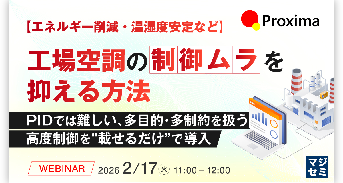 株式会社Proxima Technologyは、この革新的なSmart MPC技術の詳細と、工場空調における制御ムラをどのように改善できるのかを解説する無料ウェビナーを開催します。