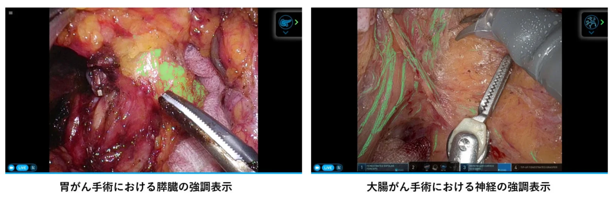 新機能では、手術中に特に温存が求められる重要な臓器である「膵臓」や、繊細な「神経」の認識支援が新たに加わりました。これにより、単に構造物を見せるだけでなく、医師が手術中に「どのように操作すべきか」「どこまで剥離すべきか」といった重要な「判断」を下す際の質を高めることを目指す、臨床支援AIへと大きく飛躍したのです。
