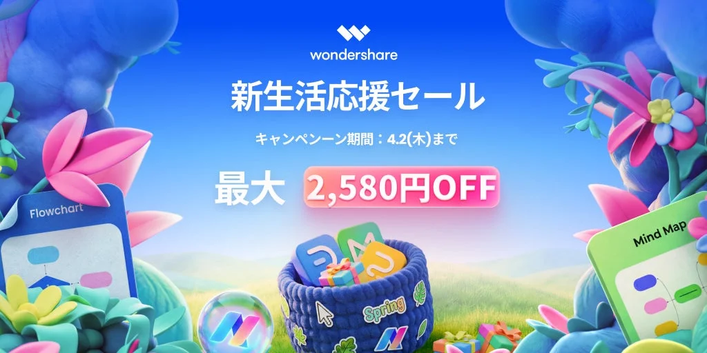 株式会社ワンダーシェアーソフトウェアは、新生活をスムーズにスタートできるよう、作図ソフト『EdrawMax(エドラマックス)』とマインドマップソフト『EdrawMind(エドラマインド)』を特別価格で提供する「新生活応援セール」を開催しています。これらのソフトは、単なる作図・マインドマップ作成ツールにとどまらず、AI機能を搭載することで、資料作成や思考整理のプロセスを劇的に変革します。この機会に、AIの力を借りて新生活の業務・学習を効率化し、より充実した日々を送るための第一歩を踏み出してみませんか。