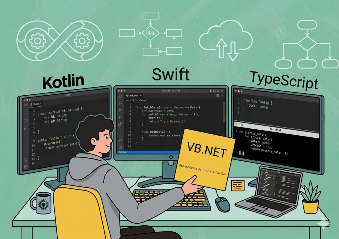 オーエムネットワークに入社した未経験エンジニアは、この研修プログラムを経て、わずか1年間で目覚ましい実績を上げました。具体的には、3社のシステム開発案件を担当し、なんと5つの異なるプログラミング言語(Swift、Kotlin、TypeScript、Python、VB.NET)に対応することができたのです。