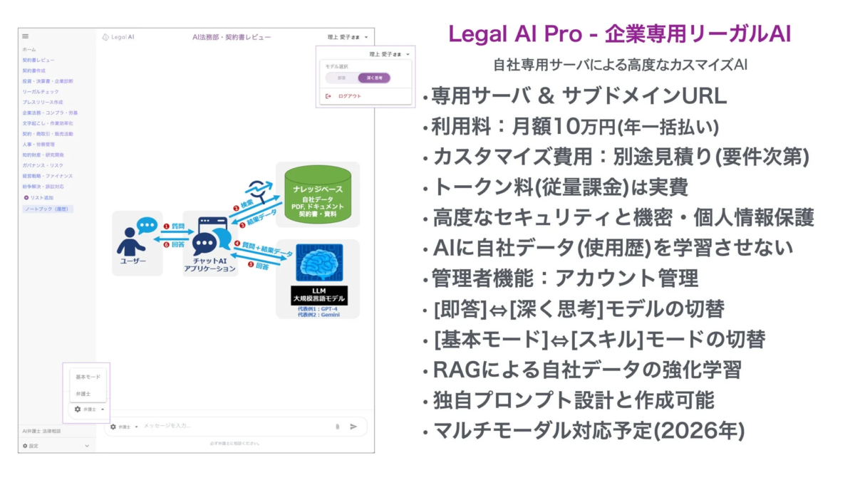 これにより、AIが非弁行為を行うことなく、法律家がより効率的かつ正確に業務を進めるための強力なアシスタントとして機能します。
