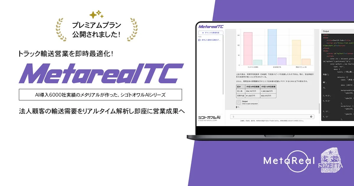 今回提供が開始されたMetareal TCのプレミアムプランは、物流業界の営業担当者やロジスティクスマネージャーが、より戦略的に業務を進めるための強力なツールとなるでしょう。