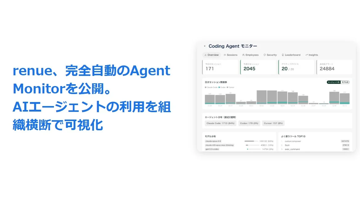 AIエージェントの利用状況を組織全体で可視化!renueの「Agent Monitor」で業務効率とセキュリティを革新