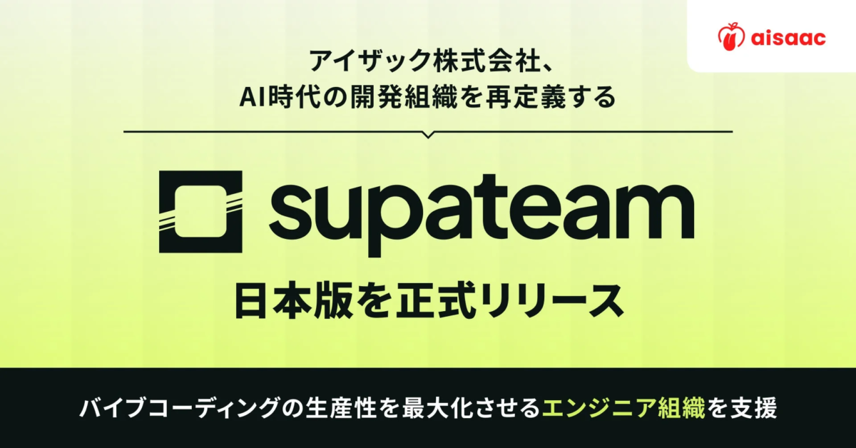 AI時代の開発組織を再定義!アイザック株式会社が「supateam」日本版を正式リリース、開発生産性向上を強力に支援