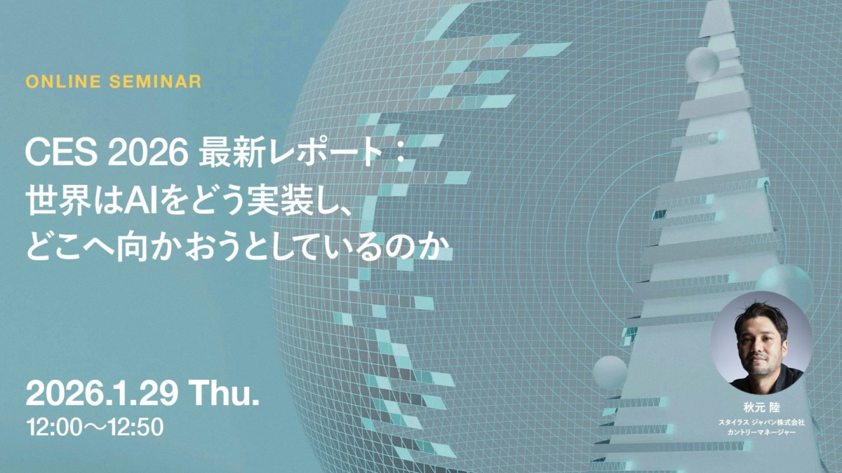 今回のウェビナーでは、世界中のマーケット潮流をリサーチ・レポートするイノベーションアドバイザリー「STYLUS」の秋元陸氏が、CES 2026を通じて見えてきたAI活用の具体的な潮流を整理します。