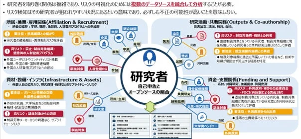 近年、国際的な研究活動が活発になる一方で、日本の優れた科学技術が不当に流出するリスクが懸念されています。このような技術流出は、国の経済安全保障にとって非常に重要な課題です。研究機関では、共同研究者や資金源など、研究を取り巻く複雑な関係性から潜在的なリスクを見つけ出す必要があり、そのための情報確認作業が研究者の大きな負担となっていました。