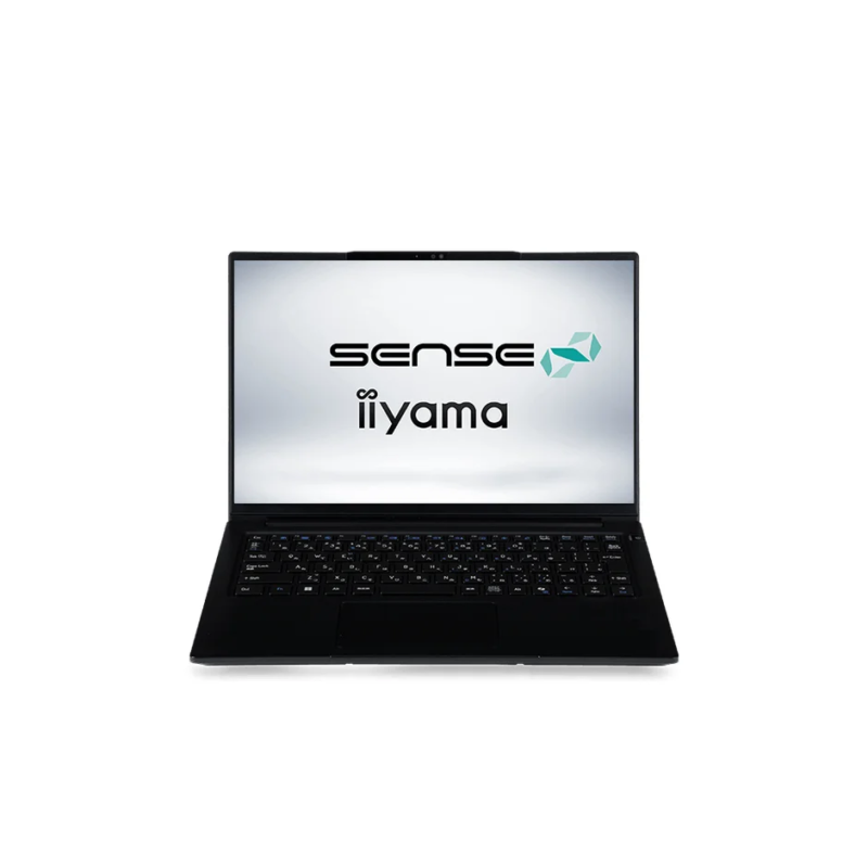 白い背景に置かれた黒いノートパソコンの画像で、画面には「SENSE iiyama」のロゴがはっきりと表示されています。