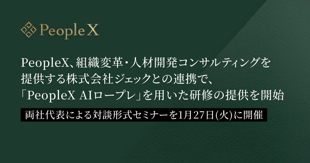 両社は2025年6月に資本業務提携契約を締結しており、PeopleXのAIテクノロジーとジェックの人材開発・組織開発における深い現場知見を組み合わせることで、次世代型の組織変革ソリューションを共創することを目指してきました。今回の「PeopleX AIロープレ」を用いた研修提供開始は、この提携の具体的な成果として位置づけられます。
