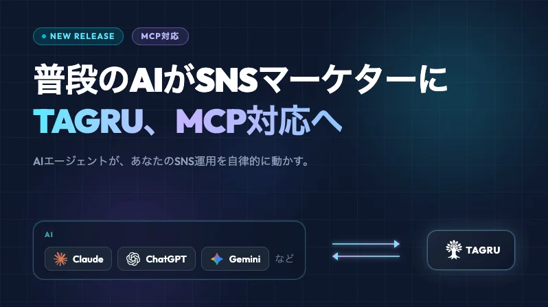 2026年3月末のMCPサーバー提供により、ユーザーは自身の使い慣れたAI(Claude / ChatGPT / Gemini)をパートナーとして、TAGRUという強力なエンジンを最大限に活用できるようになります。AIと共に歩む新しいSNS運用の形は、きっと多くの企業や個人クリエイターにとって、ビジネス成長の大きな推進力となることでしょう。TAGRUが切り拓く、AI時代のSNS運用に期待が高まります。